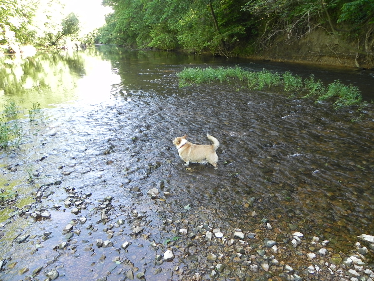 Our little Welsh Corgi, Gertie (the Permapup), is one of them. She needs no encouragement whatsoever to immerse herself in the wet stuff; whether it’s a river, a lake, or just a rain-swollen creek or an icy cold springhead, she’ll just go right in and start swimming (or wading if it’s too shallow for for the dog paddle).