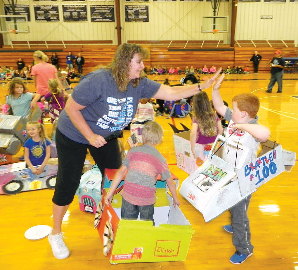 Plato kindergarten students put on a show last Friday in the 12th annual “Race to Read” stock car event in the school district’s new gym.