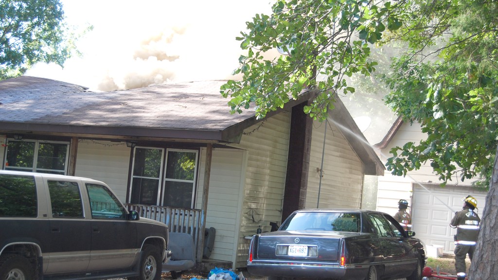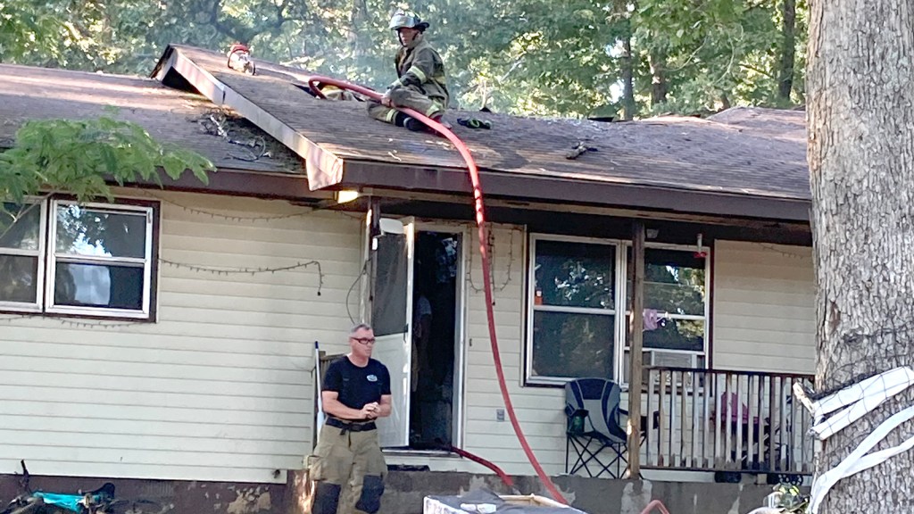 The home was on Rusty Road off Highway E. Smoke bellowed out of the structure as firefighters attacked the fire from the east and south sides of the home.